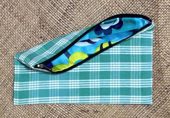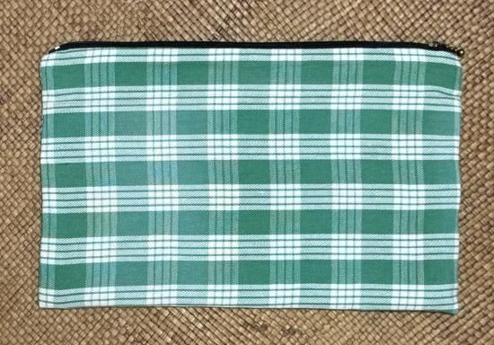 Vintage Fabric Green Palaka & Hawaiian Flower Pouch