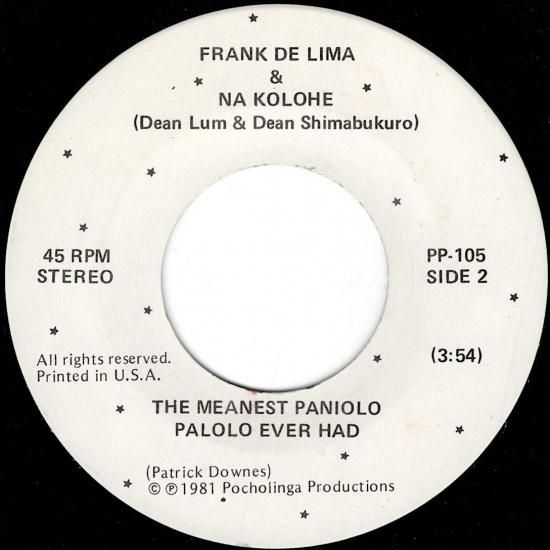 Side A Lucille Frank De Lima & Na Kolohe Side B The Meanest Paniolo Palolo Ever Had Frank De Lima & Na Kolohe ■1981Pocholinga Productions |