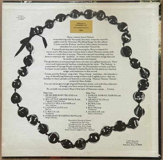 Vinyl A+++ Side A 1.Remember My Island 2.My Little Grass Shack 3.Lovely Hula Hands 4.Lahaina Luna 5.E Ma U'a 6.Hawaiian Wedding Song Side B 1.Hawaii, Hawaii, Hawaii 2.Akaka Falls 3.Kuwili 4.Ku'u Ipo 5.Aloha Oe ■1979G & E Records 最近チェックした商品