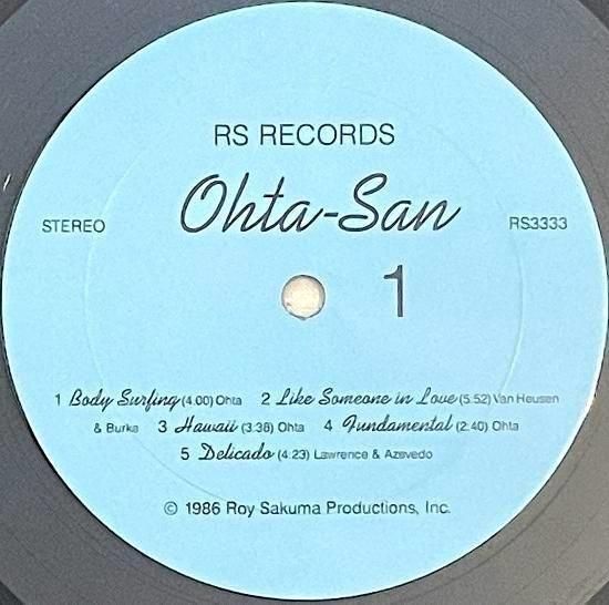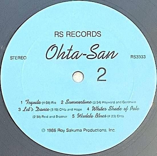 Vinyl A+++ Side A 1.Bodysurfing 2.Like Someone In Love 3.Hawaii 4.Fundamental 5.Delicado Side B 1.Tequila 2.Summertime 3.Let's Dance 4.Whiter Shade Of Pale 5.Ukulele Blues ■1986RS Records .Ohta San: `ukulele, .Jimmy Funai: guitar, .David Inamine: bass, .Tom Scheeler: keyboards, .Wayne Wakai: keyboards, .Wendell Ching: drums, percussion, .Scott Villiger: alto sax, .Jamine Hope: vocals, |